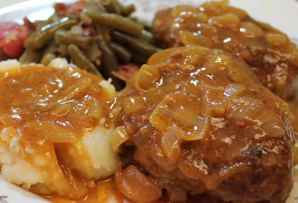 So if you’re feeling a little weak this evening or if you’re just hungry for a fantastic meal, there is nothing quite as satisfying as a plate of Salisbury Steak nestled in a bed of mashed potatoes and covered with warm beef gravy!