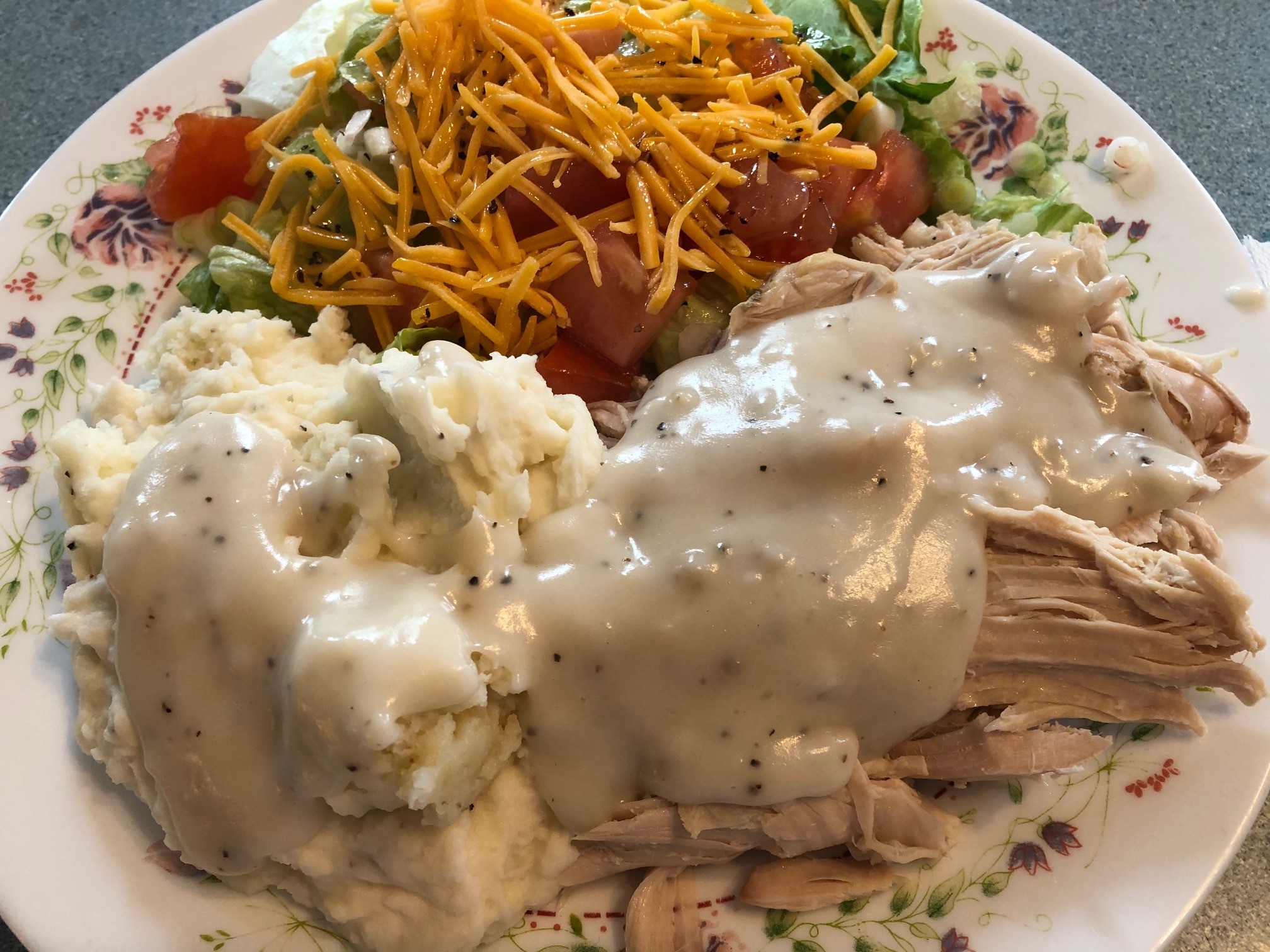 In a large skillet, heat the oil over medium-high heat (#5 or at the half-way point on your burner dial). Sprinkle the chicken with the pepper and 2 teaspoons of the salt. Dredge in the flour, shaking off any excess. Place the chicken in the skillet and cook, turning once, for approximately 8 minutes per side until golden brown on both sides and a thermometer inserted in the thickest part of the chicken registers 165°F. Transfer to a plate to cool and set aside.